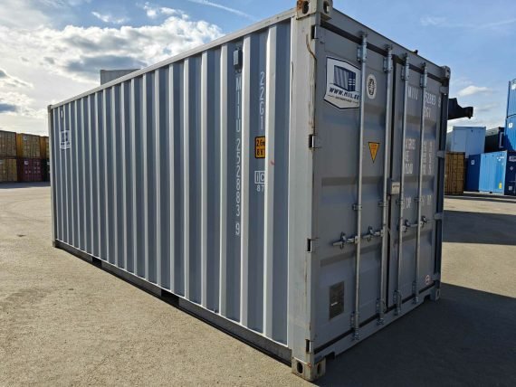 Contenedor de envío gris claro de 20 pies usado
